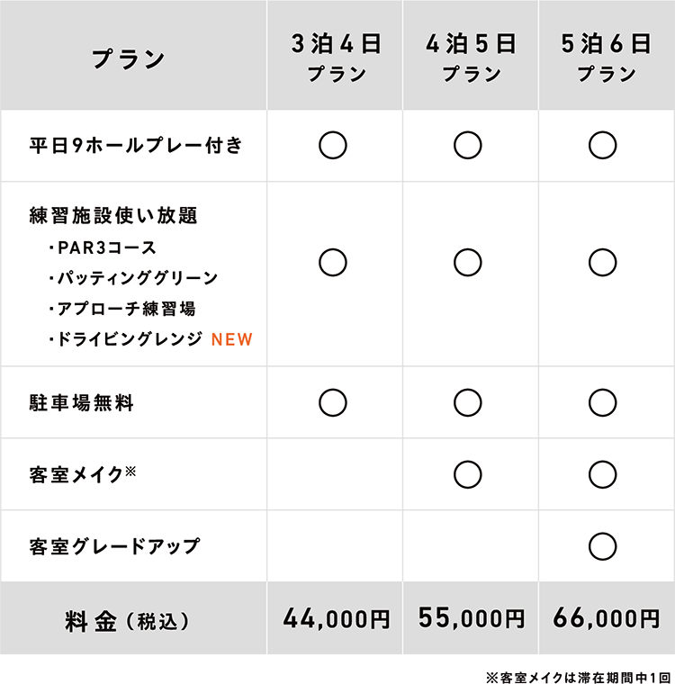 ※チェックイン前、チェックアウト後であっても、練習施設はご利用いただけます。
