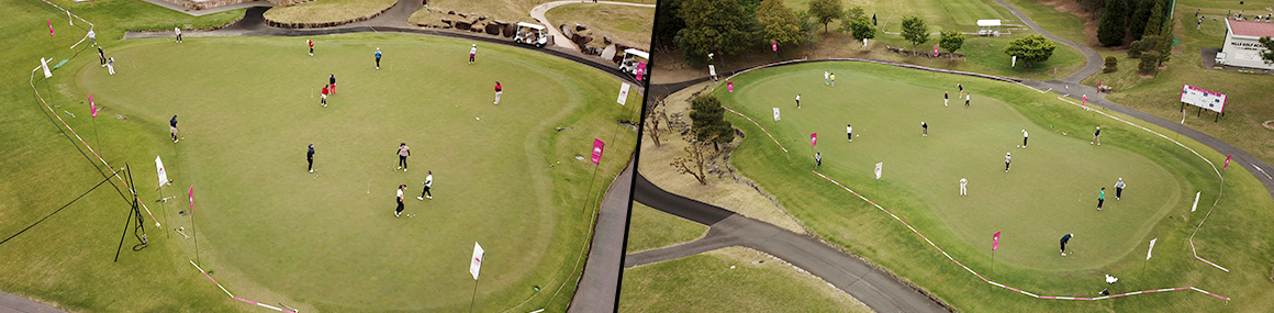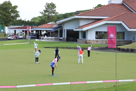 数々のトーナメントが開催されている本コースと同じ高速グリーン。写真は「静ヒルズレディース 森ビルカップ」でのスタート前の練習風景です。