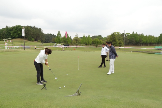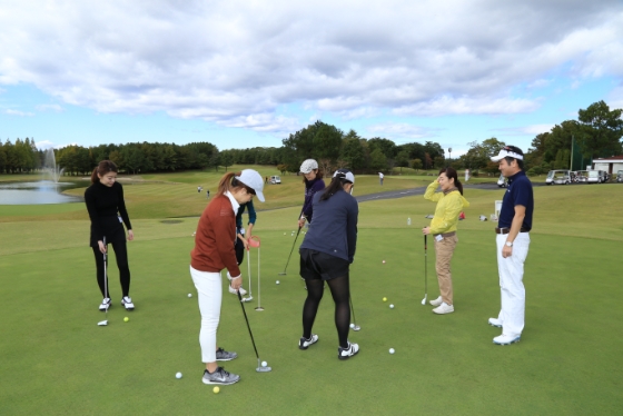 ヒルズゴルフアカデミーのイベントでの練習風景。広々としてグリーンコンディションも常に良好なので、様々なレッスンイベントの会場としても利用されています。