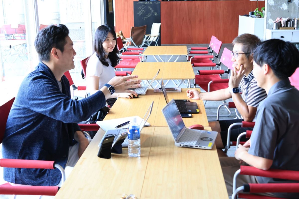 ワーケーション参加メンバーでディスカッション。対面での打合せは、メンバーの表情等が読み取りやすく、ニュアンスを伝え合いながら円滑にコミュニケーションをとることができます。