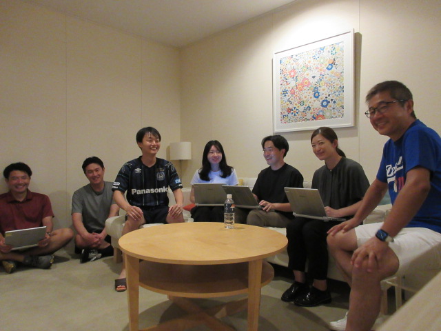ホテルの部屋に集合して全社的な課題に関するディスカッションを実施しました。メンバーそれぞれの経験を活かした意見交換ができ、課題解決に大きく近づいたように感じます!こうした部署を越えた意見交換ができるのは、ゴルフという共通の趣味を通じて仲を深めたワーケーションメンバーならではです!