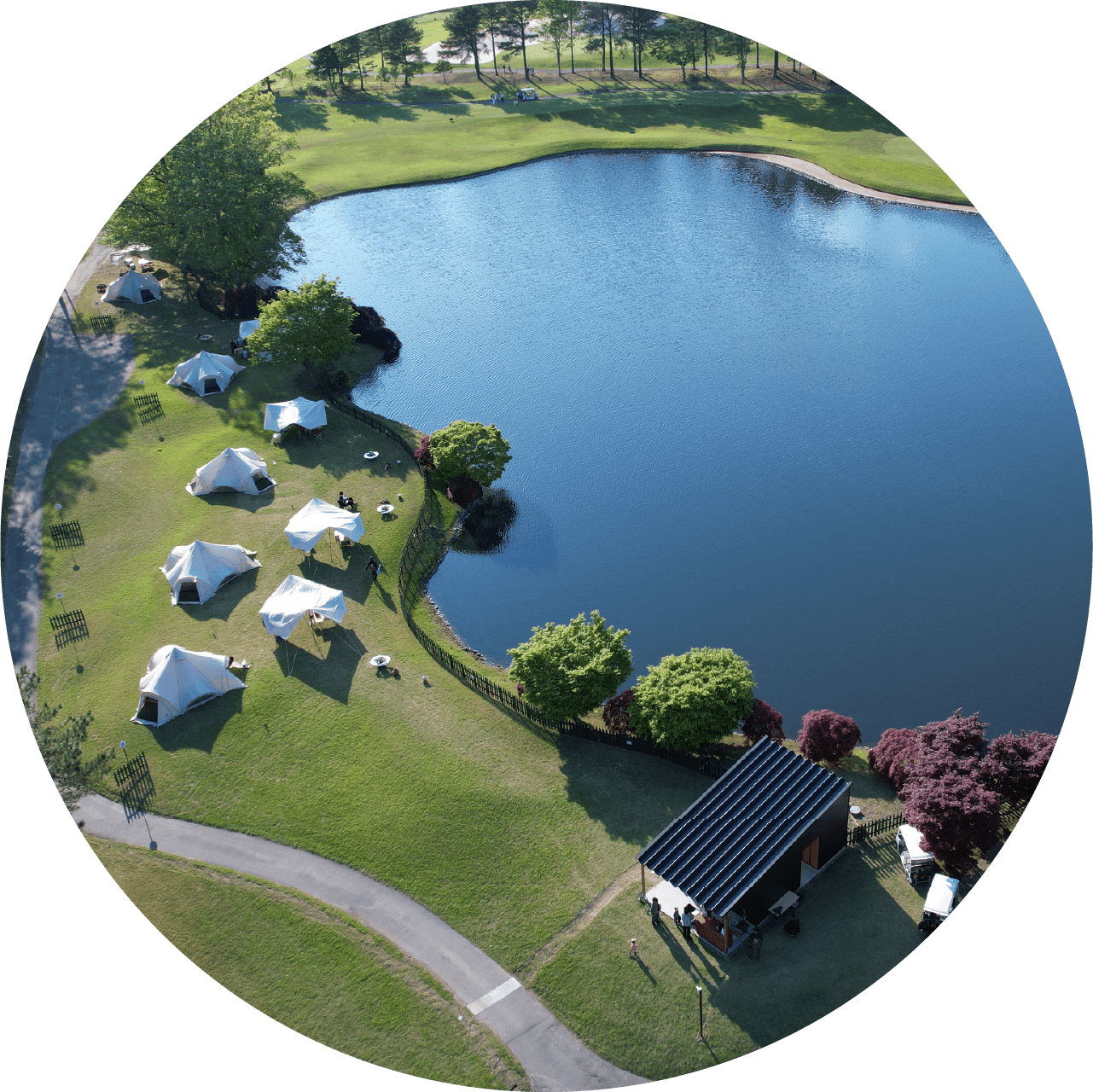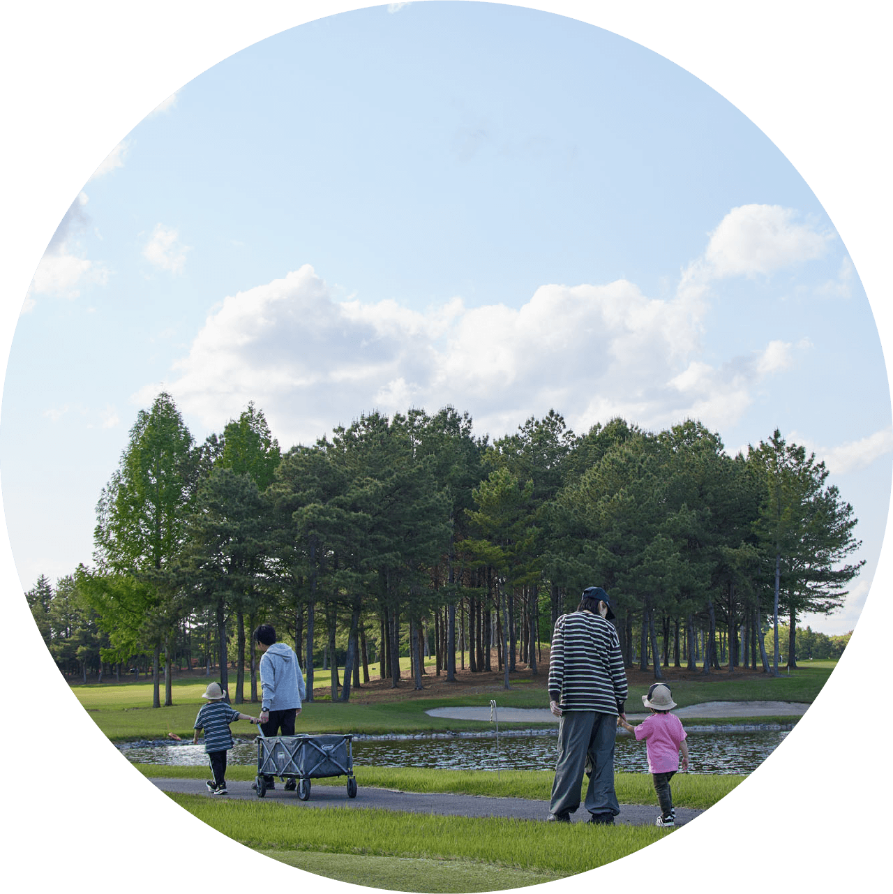 広大なゴルフ場内にある当キャンプ場は、緑の絨毯と蒼い空が広がっています。