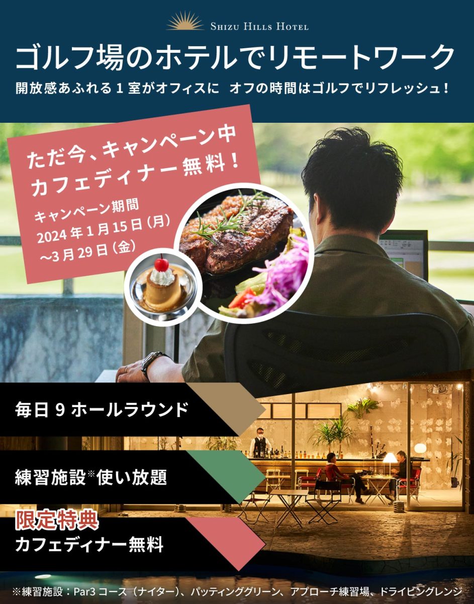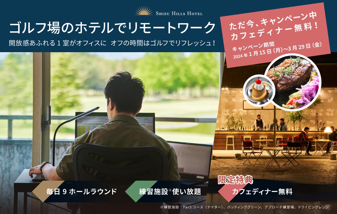 快適なホテルの1室が、あなたのオフィスに。オフの時間はゴルフでリフレッシュ!