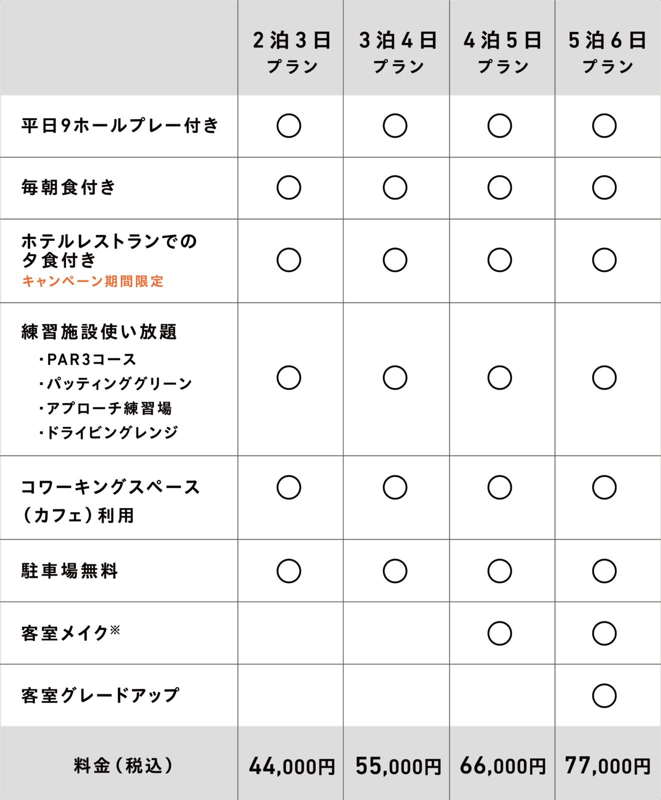 ※チェックイン前、チェックアウト後であっても、練習施設はご利用いただけます。
