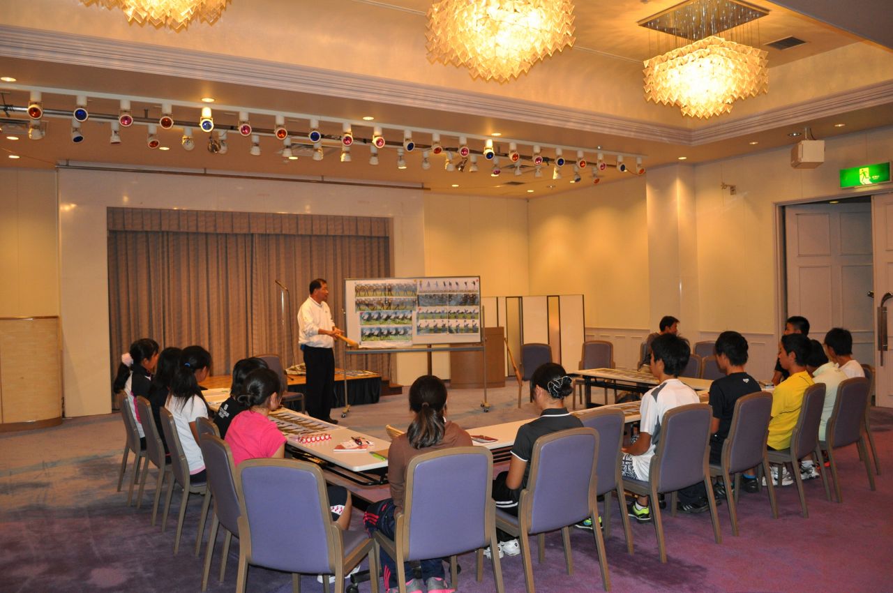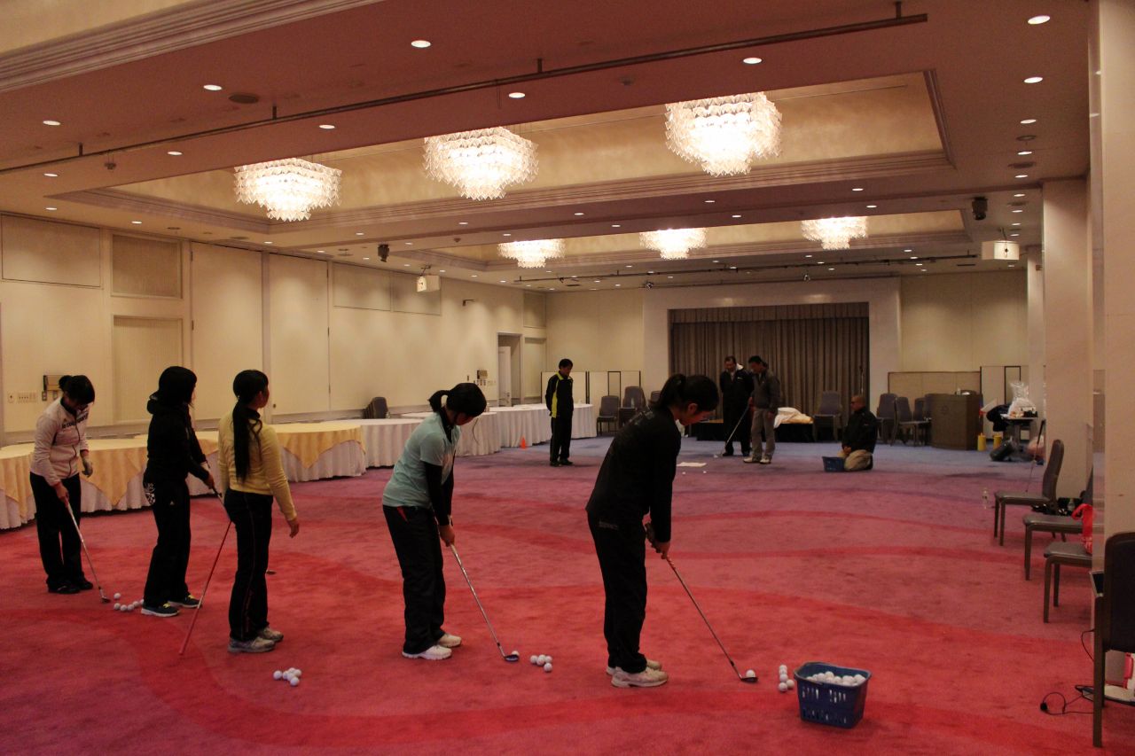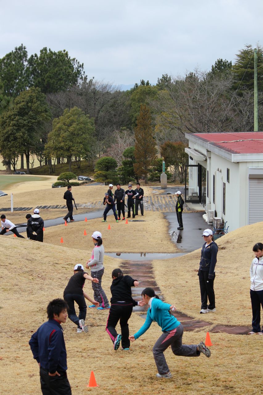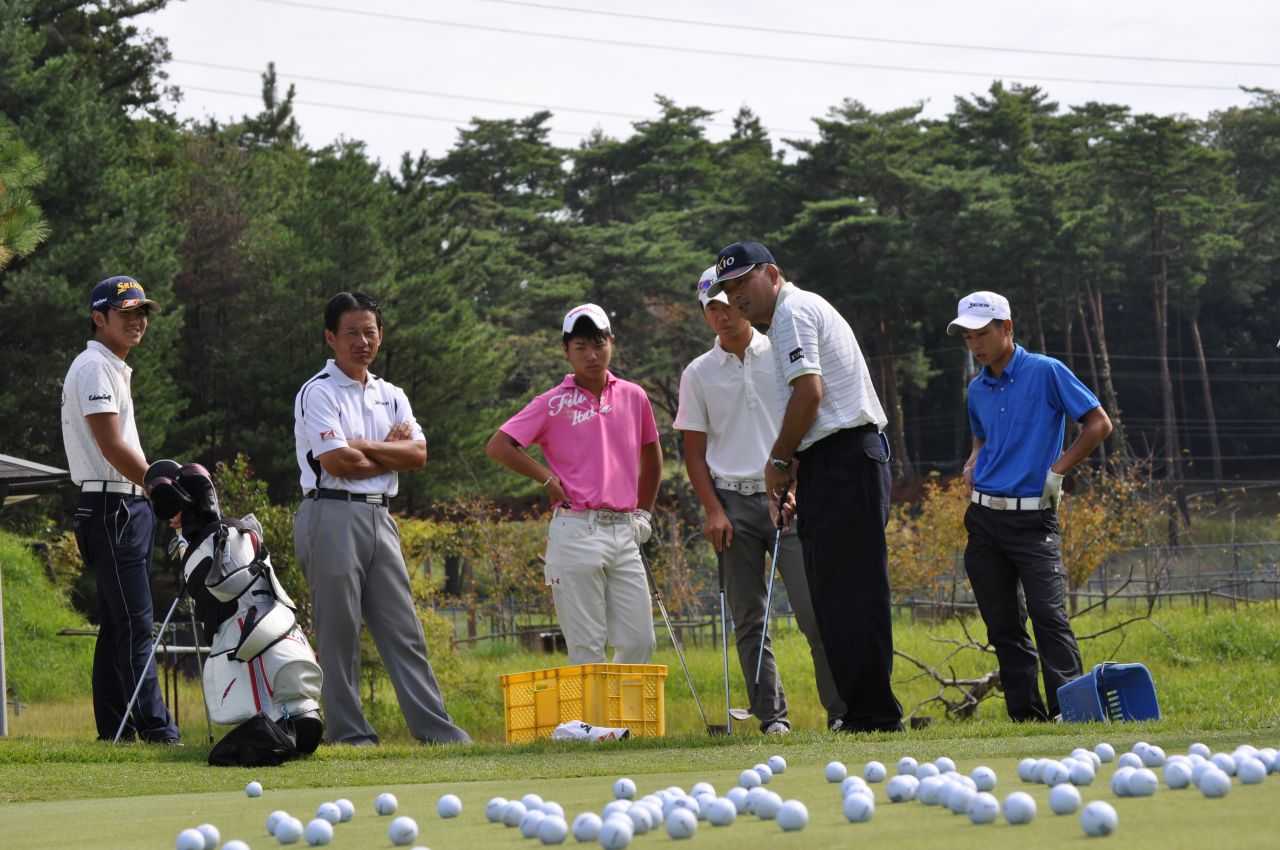 毎年、夏、冬、春に開催され、基本的にはトミーアカデミー生全員が参加する合宿です。金曜日の夕方に静ヒルズCCに集合し、日曜日までの2泊3日、集中的な指導をおこないます。 指導内容は、技術的なことからコースマネジメント、トレーニング方法まで多岐にわたります。但し、所謂レッスンとは全く異なり、各選手にヒントを与えます。そのヒントを選手が持ち帰り、日頃の練習に生かすかは選手次第です。また、全員合宿での中嶋プロの講義は、もっとも重要な内容の1つです。これまでのアカデミー生誰に聞いても、「中嶋プロの話は大変勉強になった。試合中に起こる、様々な場面で適応できるようなった」と話しています。