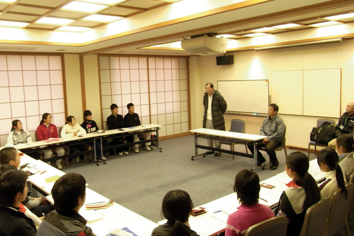 【2012年11月に実施された1回目の合宿では4回のミーティングを実施。生徒は10分前に集合。中嶋プロの厳しい言葉に緊張感が漂う】