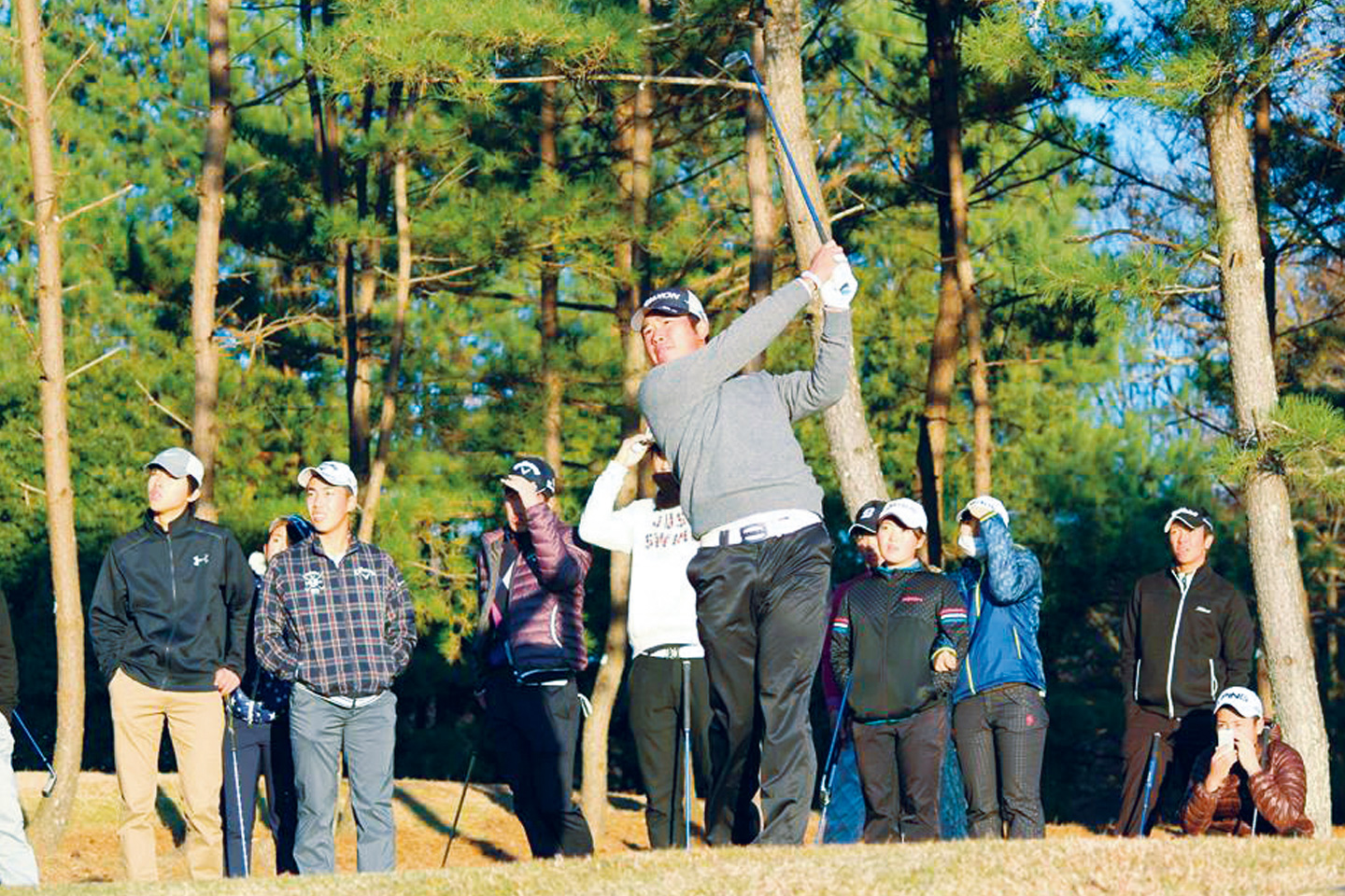 2015年12月に実施された中高生を対象とした合宿では、なんと松山英樹選手がゲスト参加。子供たちと一緒にプレーしたり、模範プレーをしてくれたり、時にはアドバイスも行っていました。中嶋プロは日頃から世界のトッププロを見て感じとることを推奨していますが、目の前にいる世界レベルの選手の一挙手一投足を見逃すまいと、いつも以上に真剣な眼差しで練習に取り組んでいました。